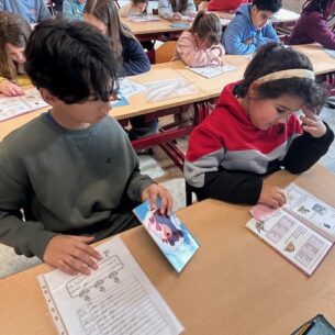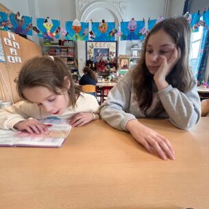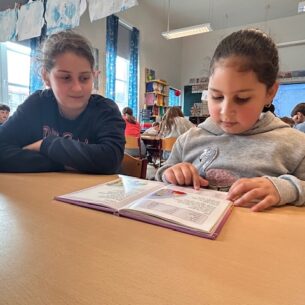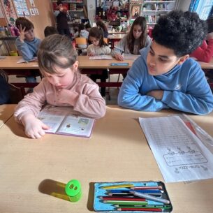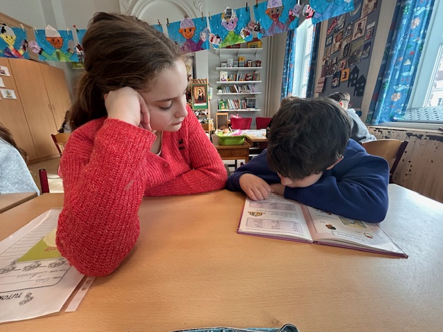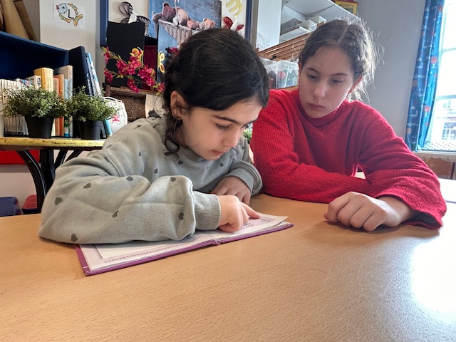 Tijdens tutorlezen werken leerlingen van het zesde leerjaar samen met kinderen van het eerste leerjaar om samen te lezen en te oefenen. De oudste leerlingen begeleiden de jongsten geduldig, waardoor beide leerjaren hun leesvaardigheid en zelfvertrouwen versterken.