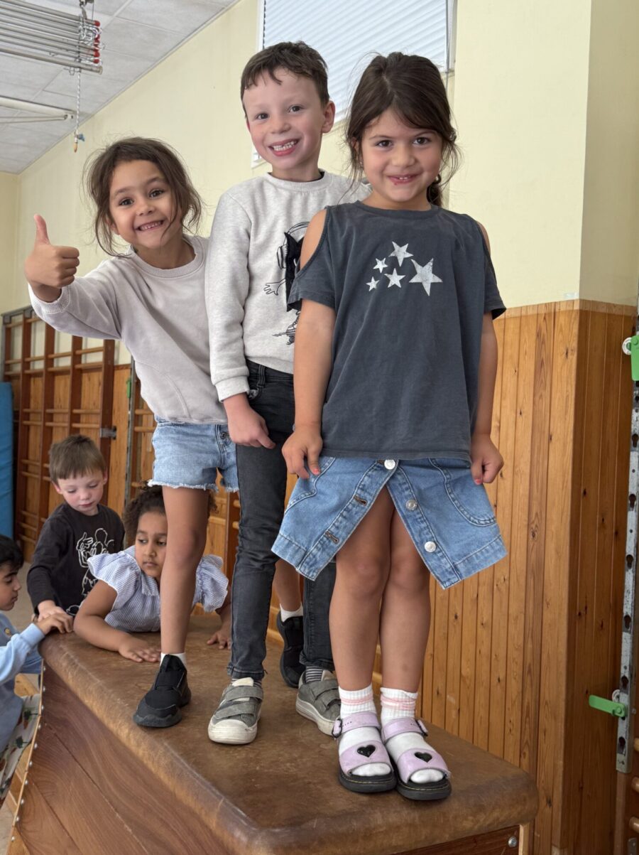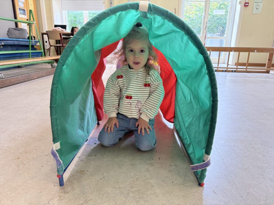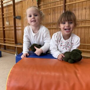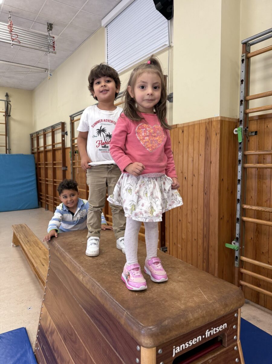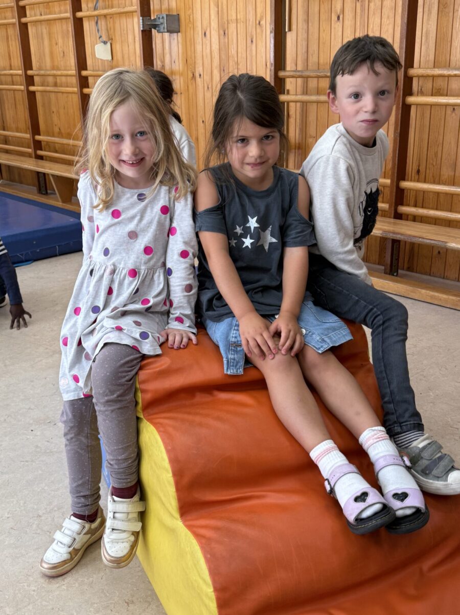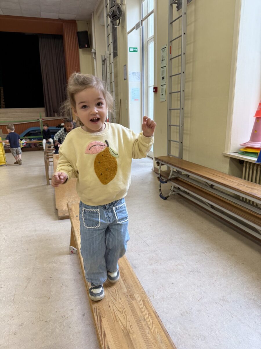 We rekken en strekken de beentjes. In de turnzaal oefenen we alvast om goed te klimmen, kruipen, rollen, springen, evenwicht bewaren… De kinderen hebben het alweer helemaal naar hun zin. Ze genieten enorm van het turnen op maandag en dinsdag.
