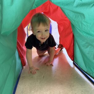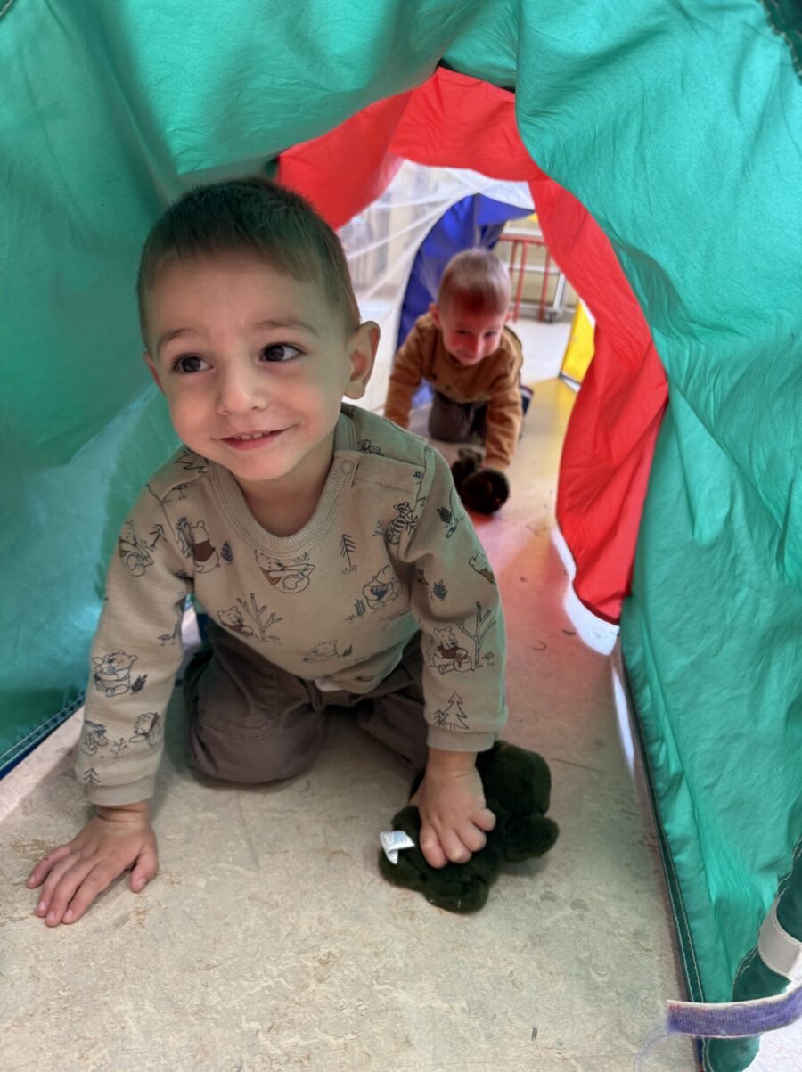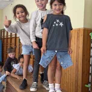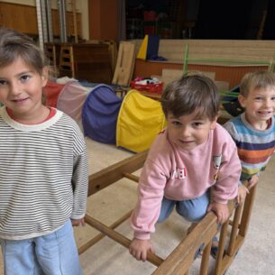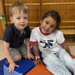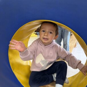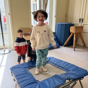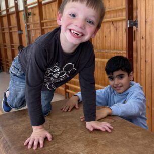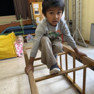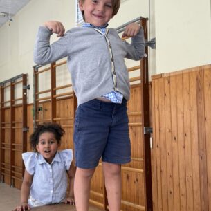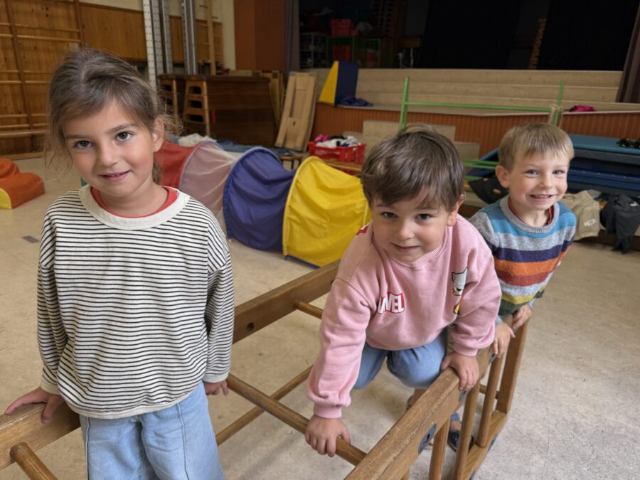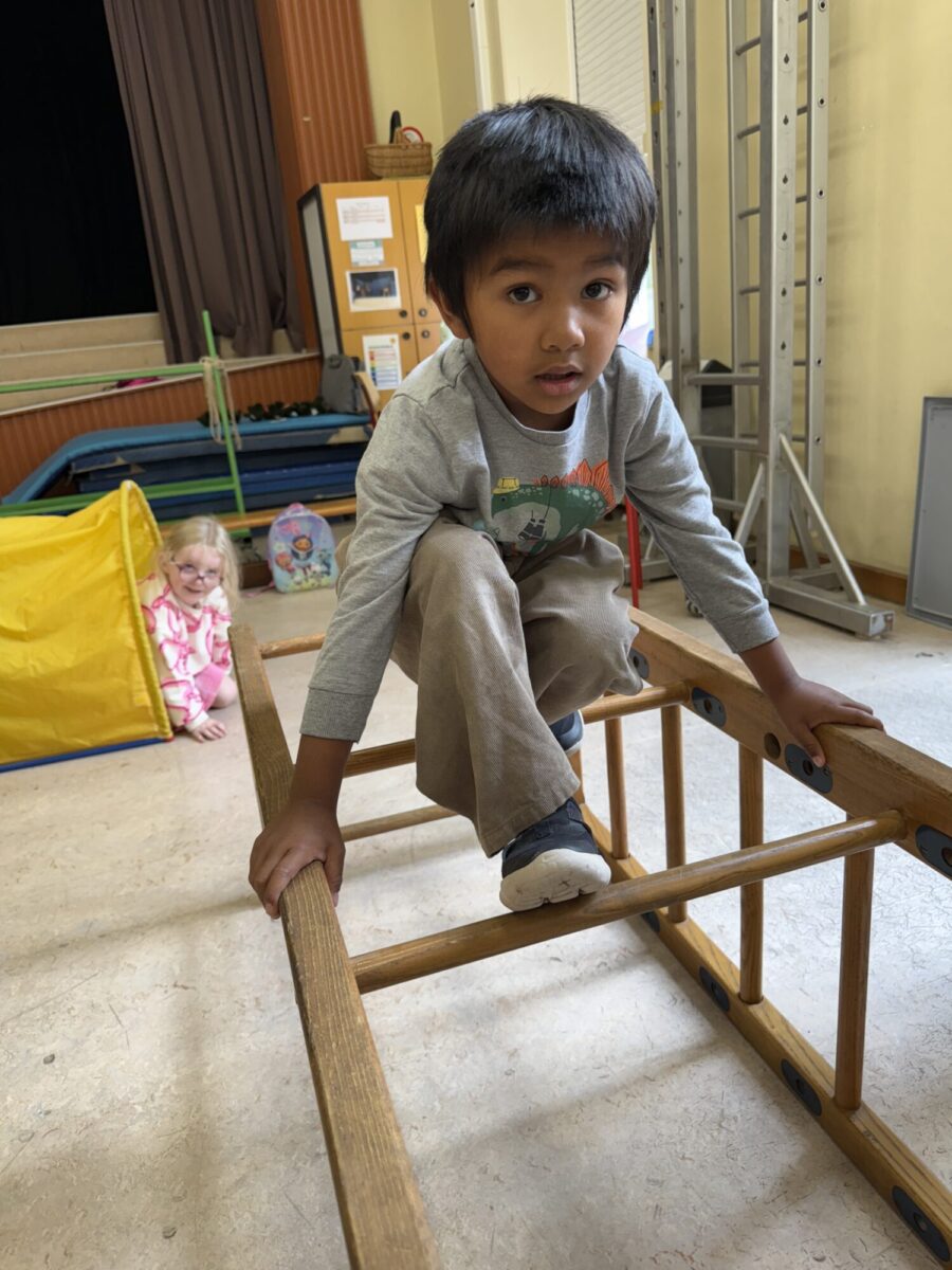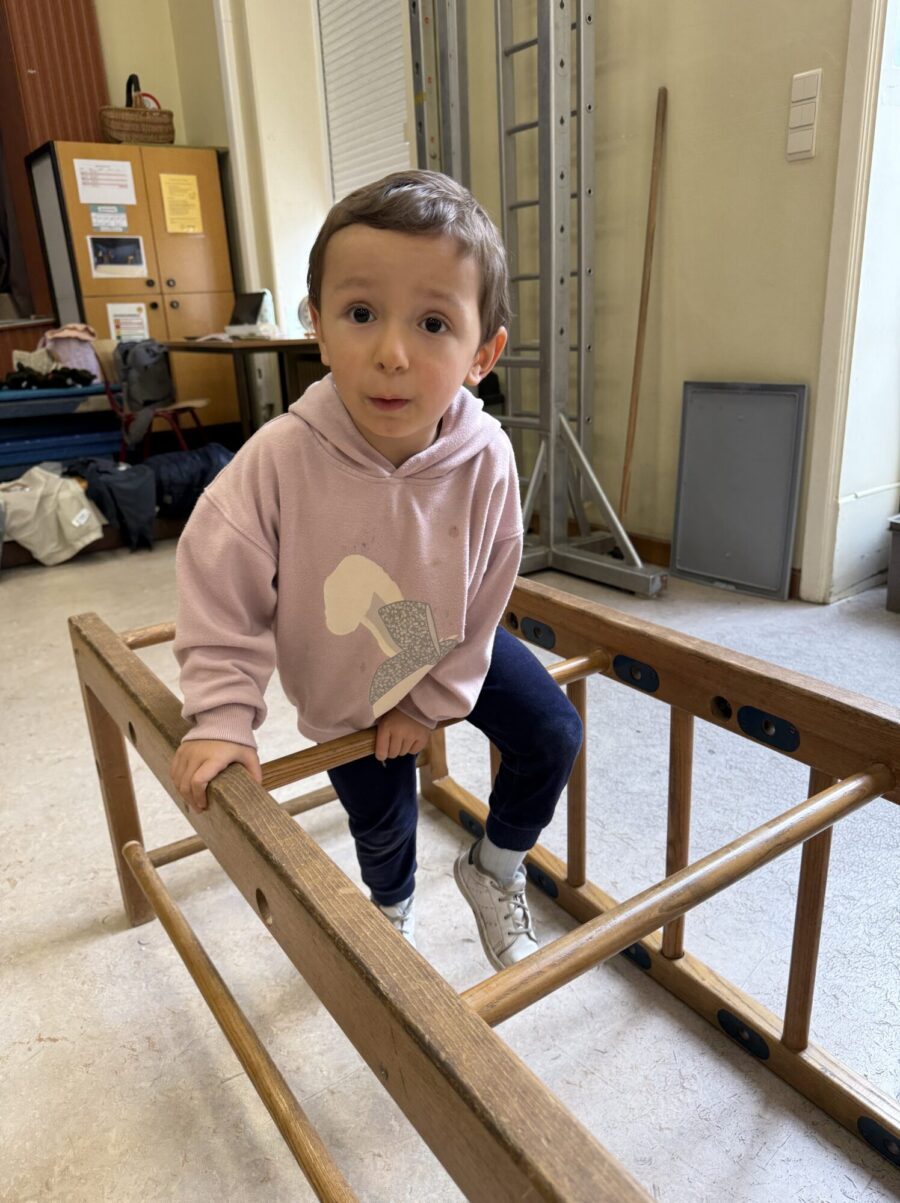 We rekken en strekken de beentjes. In de turnzaal oefenen we alvast om goed te klimmen, kruipen, rollen, springen, evenwicht bewaren… De kinderen hebben het alweer helemaal naar hun zin. Ze genieten enorm van het turnen op maandag en dinsdag.